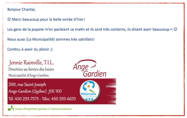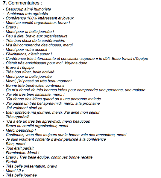 Voici des commentaires de bénévoles suite à ma Confé-Show :
