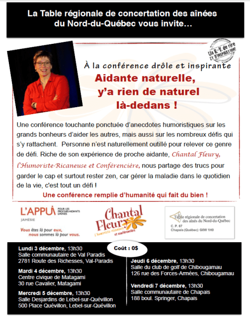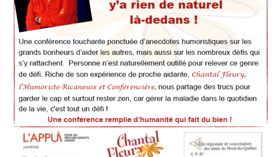 Visuel tournée en Jamésie de la conférence Aidante Naturelle, y’a rien de naturel là-dedans.